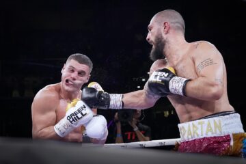 Dario Morello conquista il titolo EBU Silver dei pesi medi a TAF #11. Spettacolo e grande boxe ieri sera all’Allianz Cloud Arena di Milano (all’interno della promotion TAF#11 di Edoardo Germani), dove Dario “Spartan” Morello (nella foto mentre attacca lo svizzero/albanese Faton Vukshinaj) ha conquistato il titolo EBU Silver dei