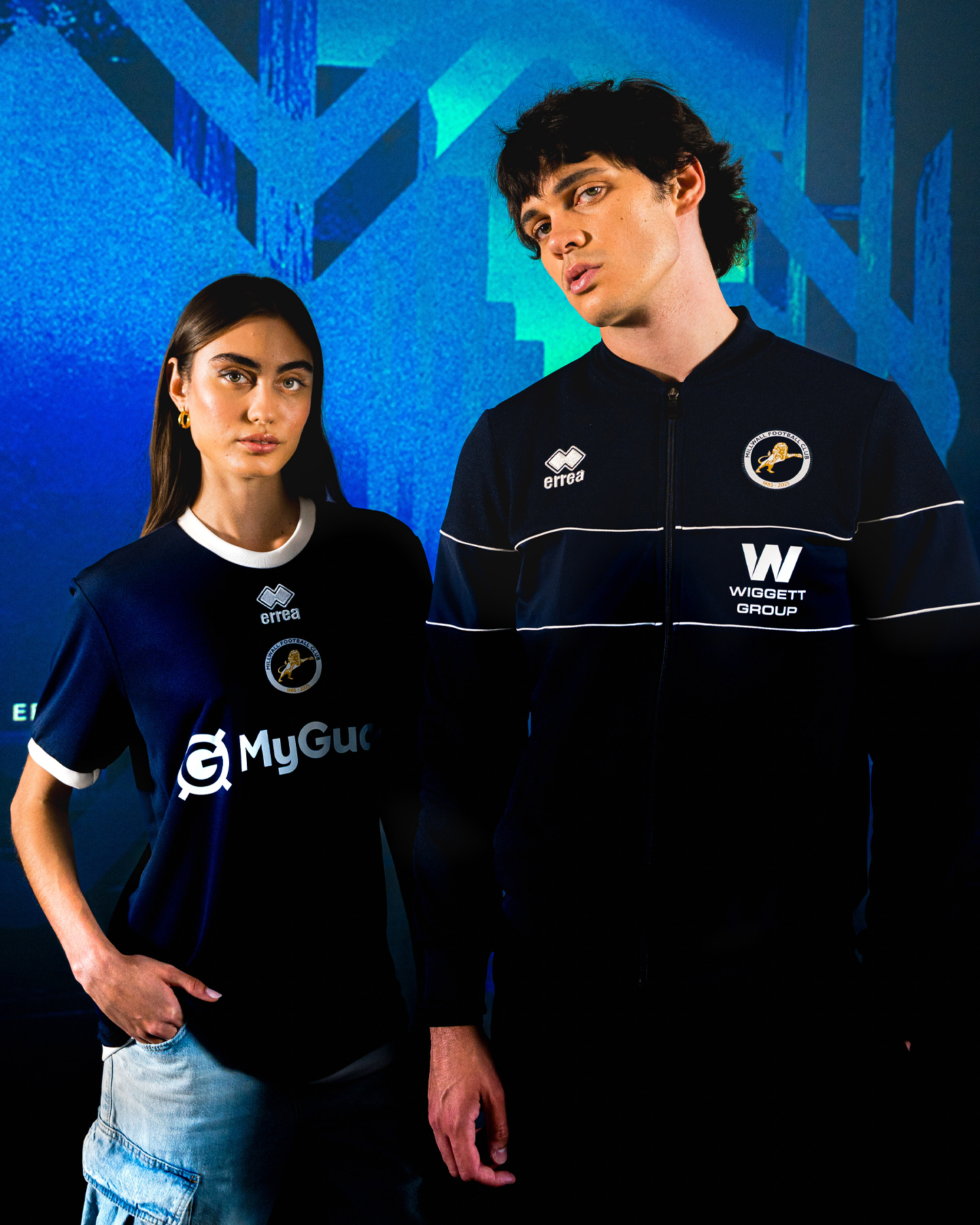 Il blu intenso, arricchito da dettagli bianchi a contrasto e da un girocollo semplice ma elegante, rappresenta un’identità forte e immediatamente riconoscibile. Il logo del club, posizionato al centro del petto e affiancato da quello di Erreà, diventa un simbolo che unisce passato e presente in un unico gesto potente. All’interno del colletto, la lunetta con la scritta M.R.F.C. rende omaggio alle origini storiche del Millwall Rovers Football Club: un legame che il tempo non potrà spezzare.