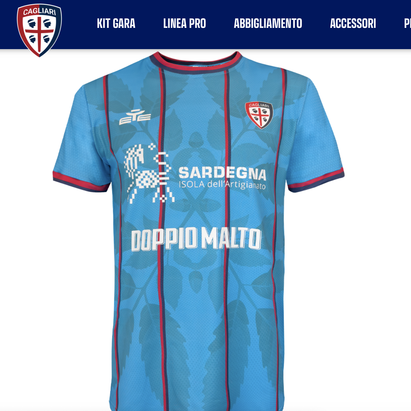 L’estetica è un omaggio alla ricchezza forestale della Sardegna, la regione con la maggiore estensione boschiva d’Italia. Sul fronte spiccano le foglie di leccio, simbolo di forza e longevità, mentre sul retro fanno la loro comparsa le foglie di roverella e sughera, emblema di stabilità e resistenza. A unire simbolismo e identità visiva, le righe verticali rosse e blu attraversano la maglia da cima a fondo, evocando i colori storici del Cagliari Calcio.