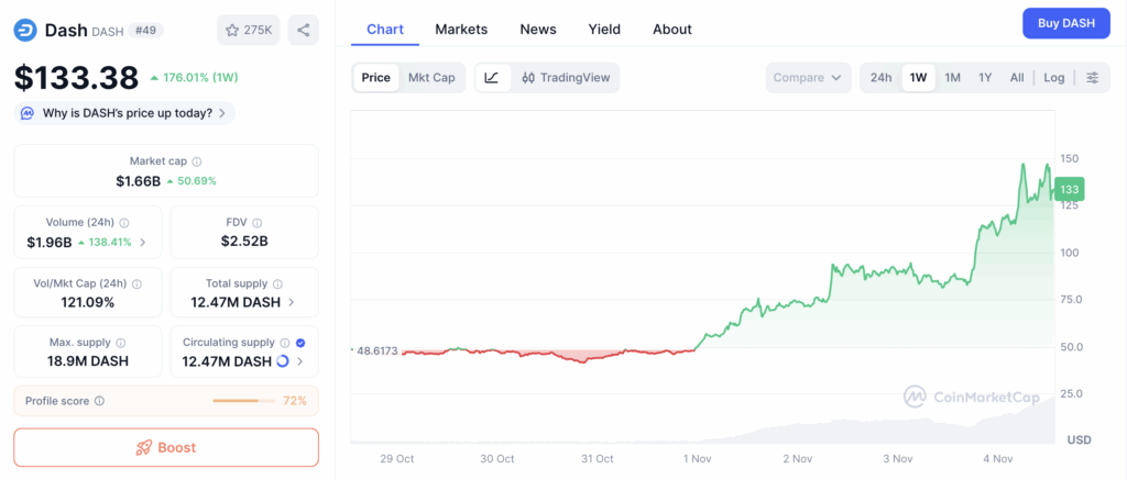 Dash: rally del 176% in una settimana, la privacy coin punta ora ai 160 dollari?