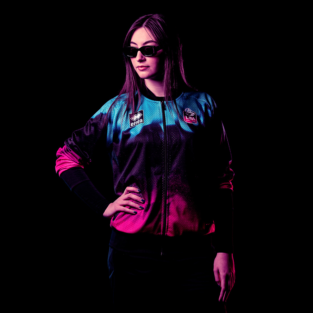 La collezione nasce da una linea progettuale che utilizza colori neon e fluo come strumenti espressivi, capaci di valorizzare la superficie del capo e generare un impatto visivo deciso, senza compromettere funzione e portabilità. I segni istituzionali delle Final Eight vengono reinterpretati attraverso trattamenti grafici di distorsione controllata, pensati per rileggere i codici visivi, mantenendo l’identità al centro del progetto.