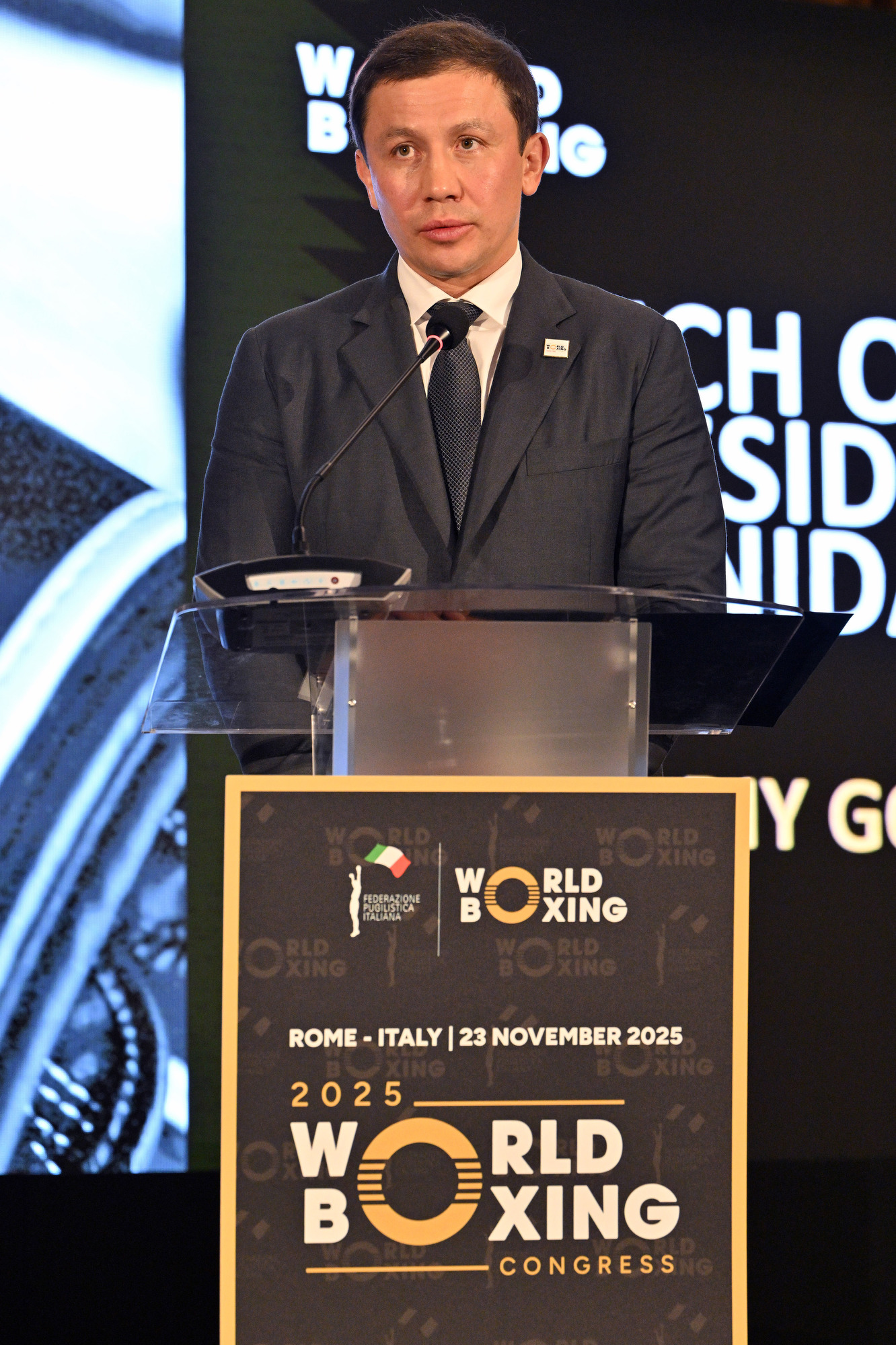 Eletto per acclamazione dai delegati presenti in sala, oggi, a Roma, allo Sheraton Parco de’ Medici, il nuovo presidente della World Boxing, unico governo mondiale del pugilato riconosciuto dal Comitato Internazionale Olimpico. E’ l’indimenticato ex campione iridato kazako, il 43enne Gennadij Gennadijevič Golovkin. Raccoglie idealmente il testimone del n.1 uscente, l’olandese Boris Van der Vorst (nella foto sotto).