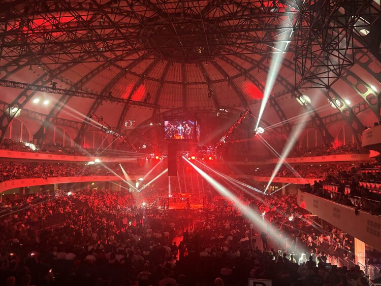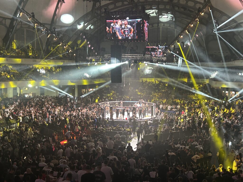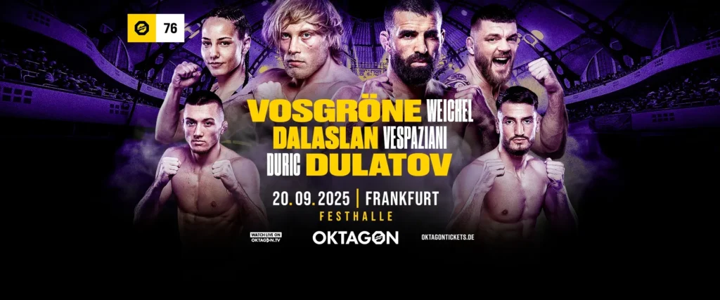 Yesterday was an opportunity to witness Oktagon MMA #76 at the indoor venue of the Festhalle in Frankfurt (easily accessible from the city center in just three metro stops both to and from, as Frankfurt’s subway never closes). The venue was completely sold out with more than 10,000 seated spectators. Oktagon MMA confirmed itself as a winning format from multiple perspectives. Yesterday, between the preliminary fights and the main card, there were ten bouts for a total of six hours of combat, in an entertainment format where music, lighting, fighter entrances, and fan engagement initiatives—like T-shirt tosses from the Oktagon mascot, Kiss Cam (as already seen at music concerts), and the Flex Cam (sponsored by one of the event’s partners)—helped create an enjoyable atmosphere from 6:00 p.m., when the fights began, until the last match (Weichel vs. Tounkara, ultimately won by local star Daniel Weichel), which concluded after 11:00 p.m.