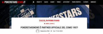 La società del gruppo internazionale Flutter, PokerStarsNews (PSN) è un nuovo partner del calcio Como 1907 (club di Serie A in questa stagione. Il logo di PSN apparirà sulle divise da gara come official sleeve partner del club guidato da mister Cesc Fàbregas. Il logo di PokerStarsNews.it debutta sulle maniche delle maglie da gioco della prima squadra